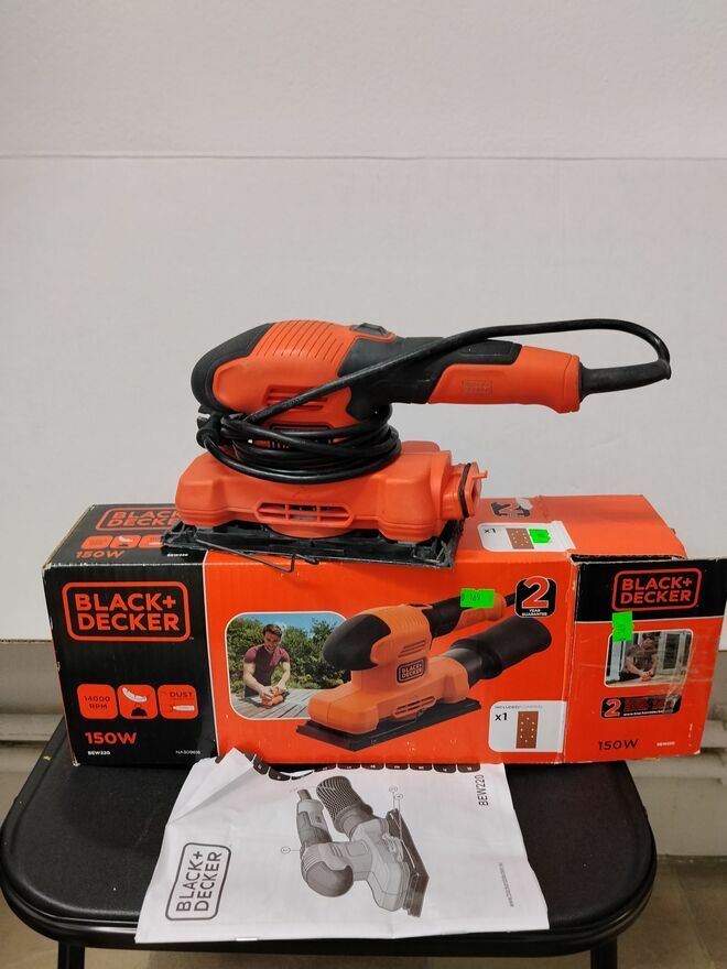 BLACK+DECKER Szlifierka Wielofunkcyjna do Drewna 150 W BEW220 w pełni sprawna i gotowa do pracy. Urządzenie przeznaczone do obróbki drewna, pozwala na precyzyjne szlifowanie i modelowanie powierzchni, co ułatwia wykonywanie różnorodnych prac stolarskich. Moc 150 W zapewnia stabilną pracę, a kompaktowa konstrukcja i wygodny uchwyt wpływają na komfort użytkowania.Mariusz