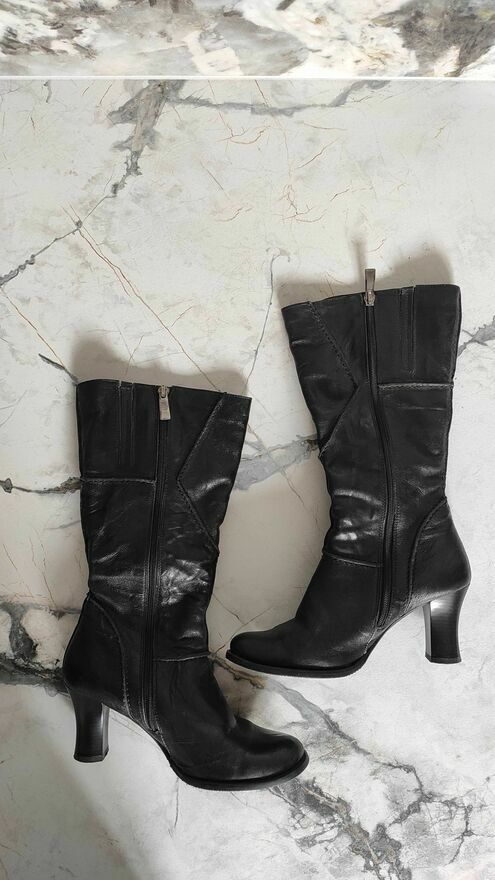 Czarne kozaki z prawdziwej skóry, używane. Bardzo dobrze zachowane, w idealnym stanie.krycho90