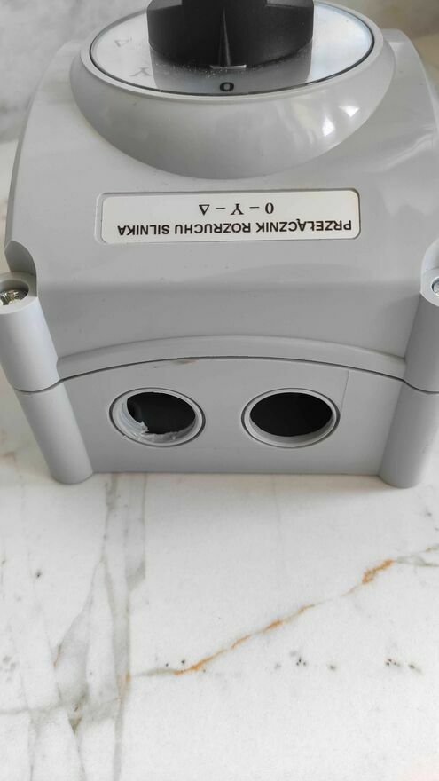 Przełącznik zupełnie nowy, jedynie wycięte dwa otwory widoczne na zdjęciu, nigdy nie był montowany. Trzy dławiki w zestawie. Dodatkowo instrukcja. Solidne wykonanie. Oryginalne opakowanie.Sprawdź zainteresowanie tym ogłoszeniem