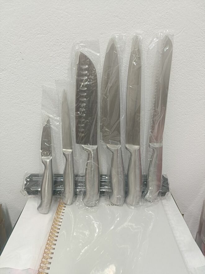 Sprzedam zestaw noży ze stali nierdzewnej.Zestaw 6 sztuk plus listwa magnetyczna.
