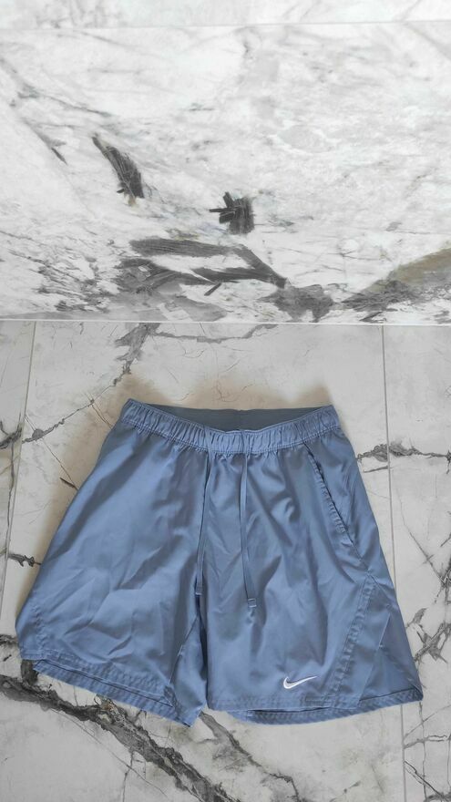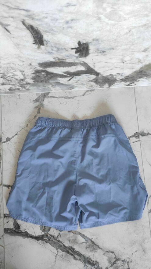 1) 36 cm - szerokość w pasie, 2) 32,5 cm - szerokość nogawki u dołu, 3) 34 cm - szerokość nogawki w kroku, 4) 17,5 cm - długość nogawki w kroku, 5) 43,5 cm - długość całkowita.Spodenki do gry w tenisa i codziennego użytku. Wytrzymały materiał wykonany z poliestru, w pasie ściągacz i sznurek do wiązania. Uszczerbki widoczne na zdjęciach, są kosmetyczne i nie wpływają na użytkowanie i wygląd.
